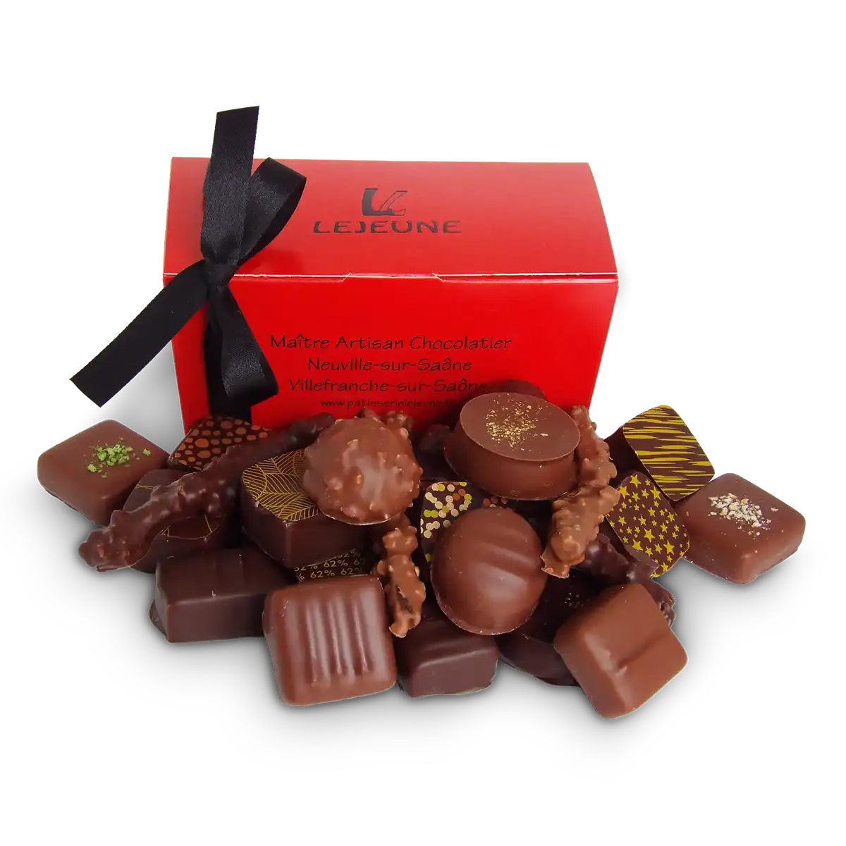 Image illustrative : le nombre et le type de chocolats peuvent varier selon la taille et la composition du ballotin.