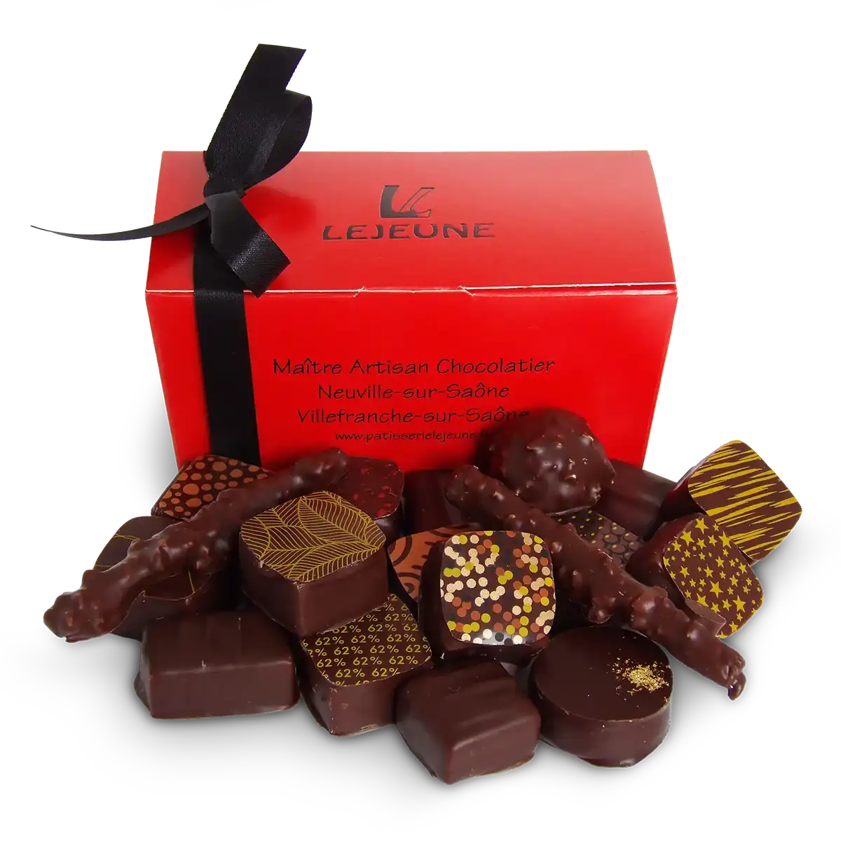 Image illustrative : le nombre et le type de chocolats peuvent varier selon la taille et la composition du ballotin.