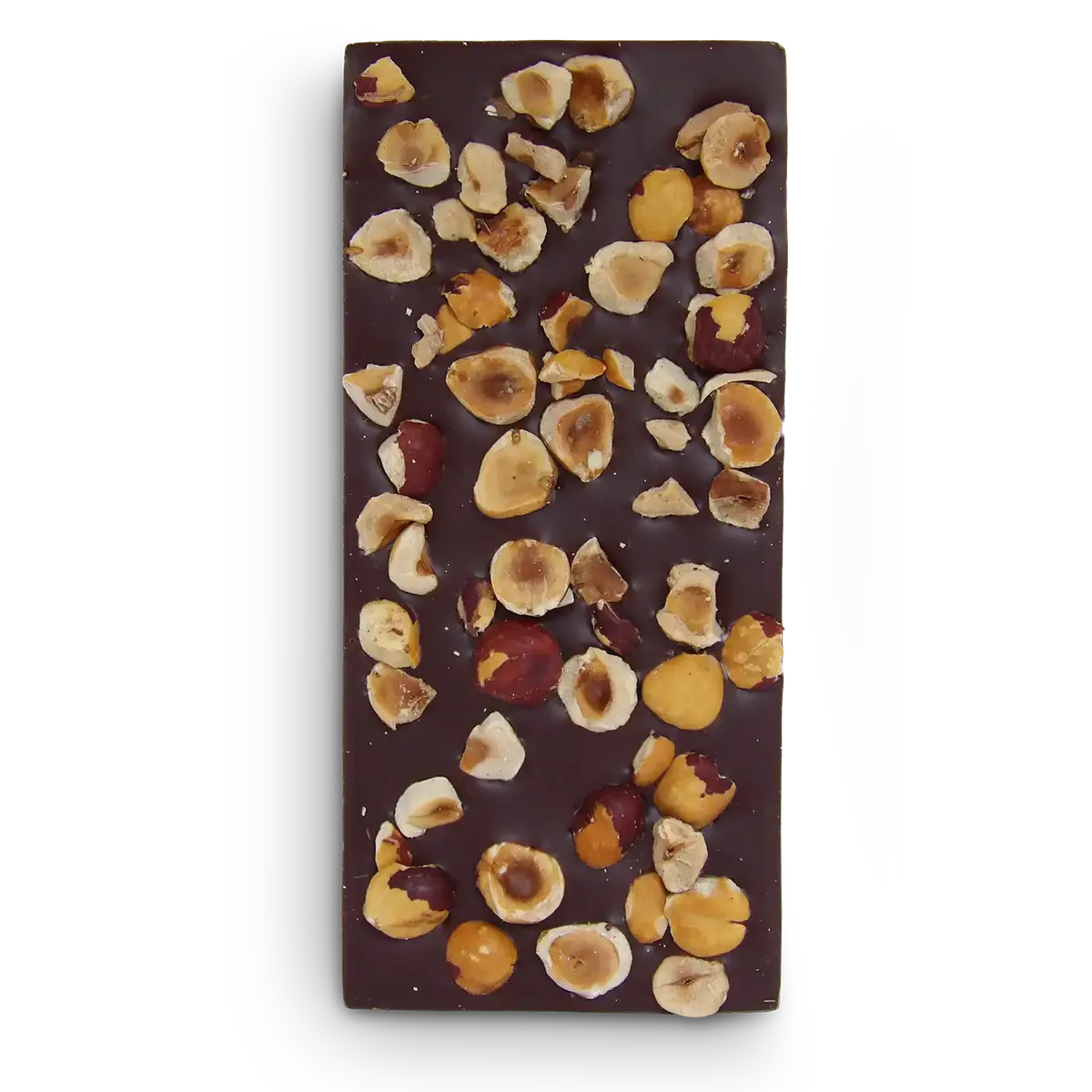 Une tablette généreuse alliant la force du chocolat noir et le croquant des noisettes torréfiées. Un grand classique revisité avec élégance.