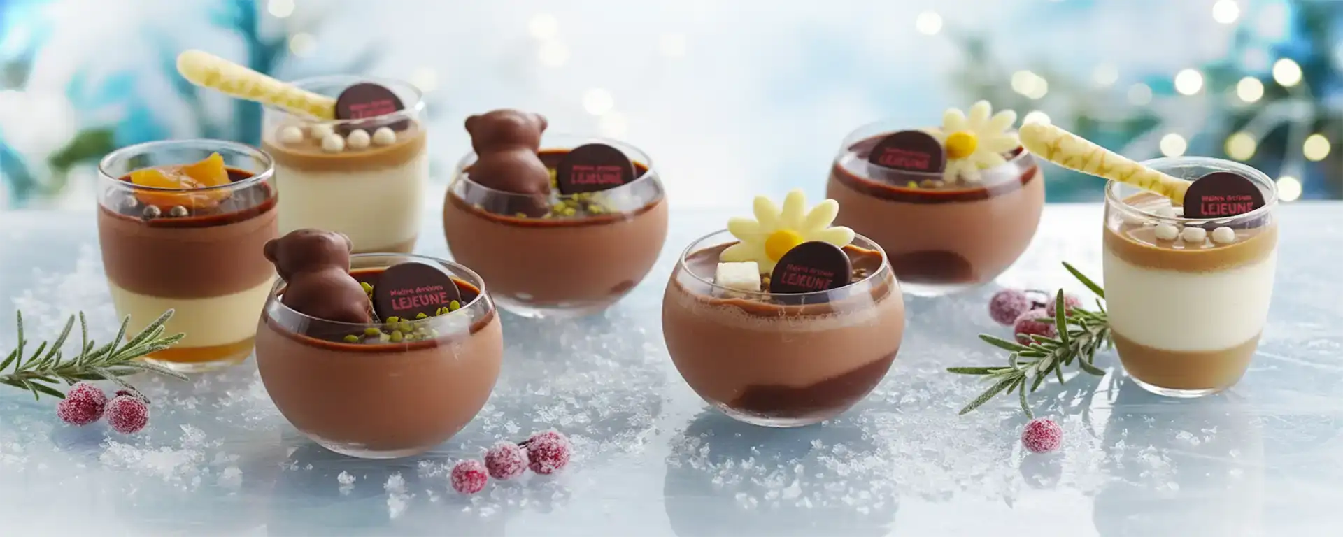 Craquez pour nos verrines pâtissières, alliant textures fondantes et saveurs équilibrées. Chocolat, pistache, abricot ou café : chaque verrine est une expérience sensorielle unique. Élégantes et pratiques, elles sont idéales pour conclure un repas ou offrir une touche raffinée à vos événements.