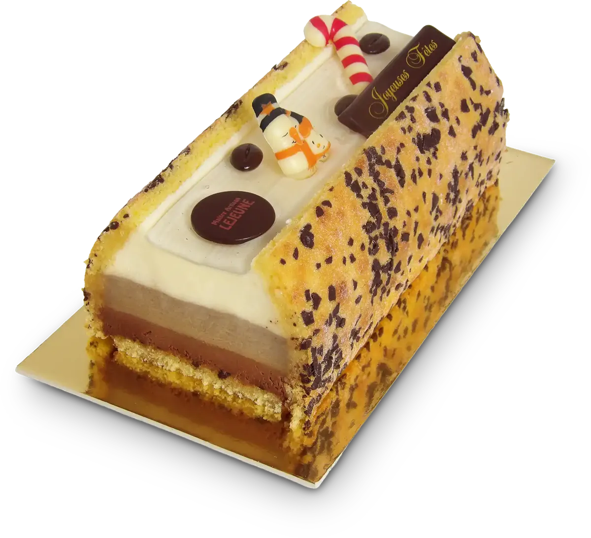 Notre bûche Tiramisu revisite le célèbre dessert italien dans une version festive et légère. Elle se compose d’un biscuit aux amandes parsemé de copeaux de chocolat, d’une crème mascarpone onctueuse, d’une crème café subtilement parfumée et d’une fine mousse au chocolat noir.