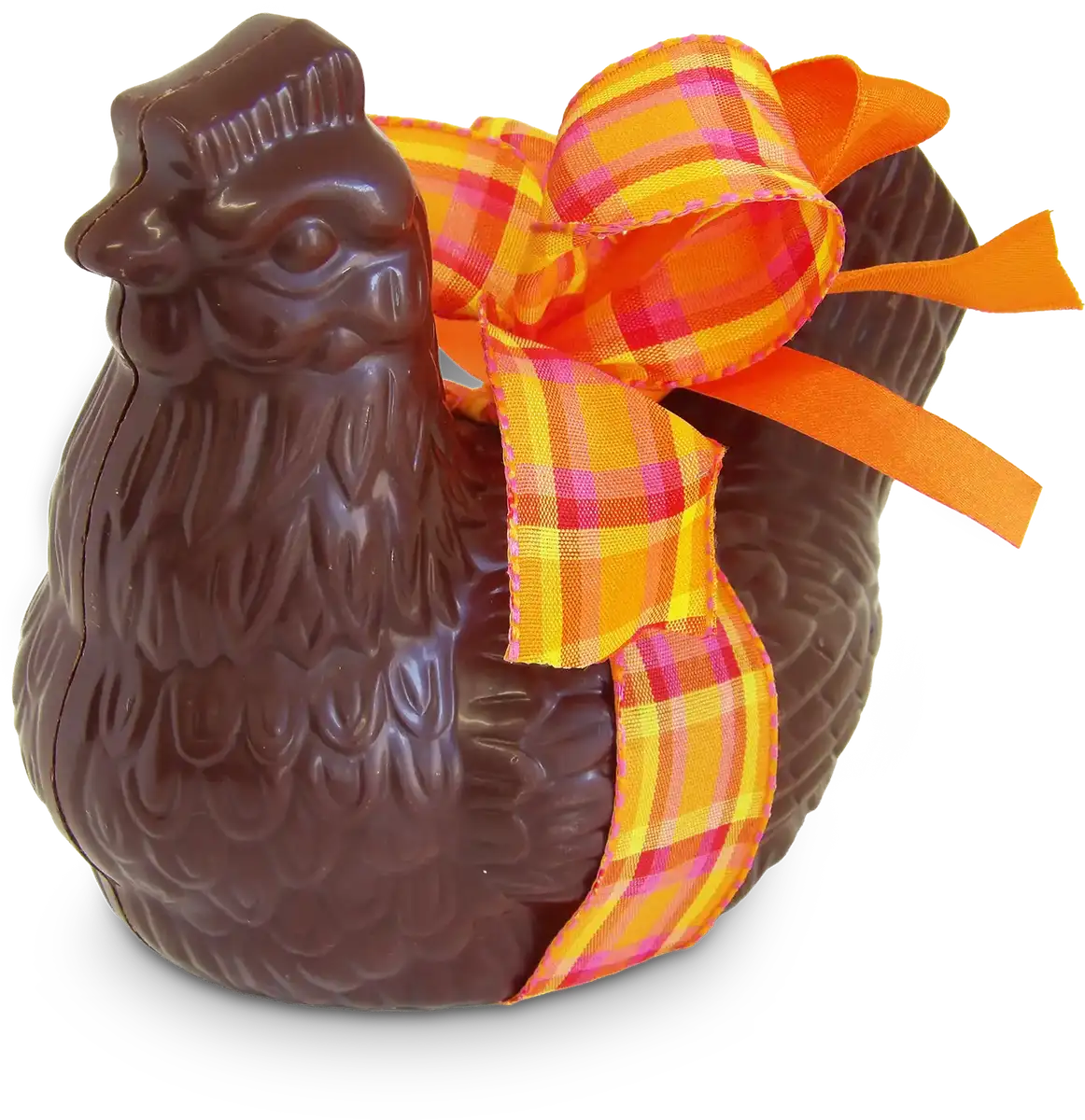 Incontournable de Pâques, la poule en chocolat est garnie d’un assortiment de douceurs pour encore plus de gourmandise.