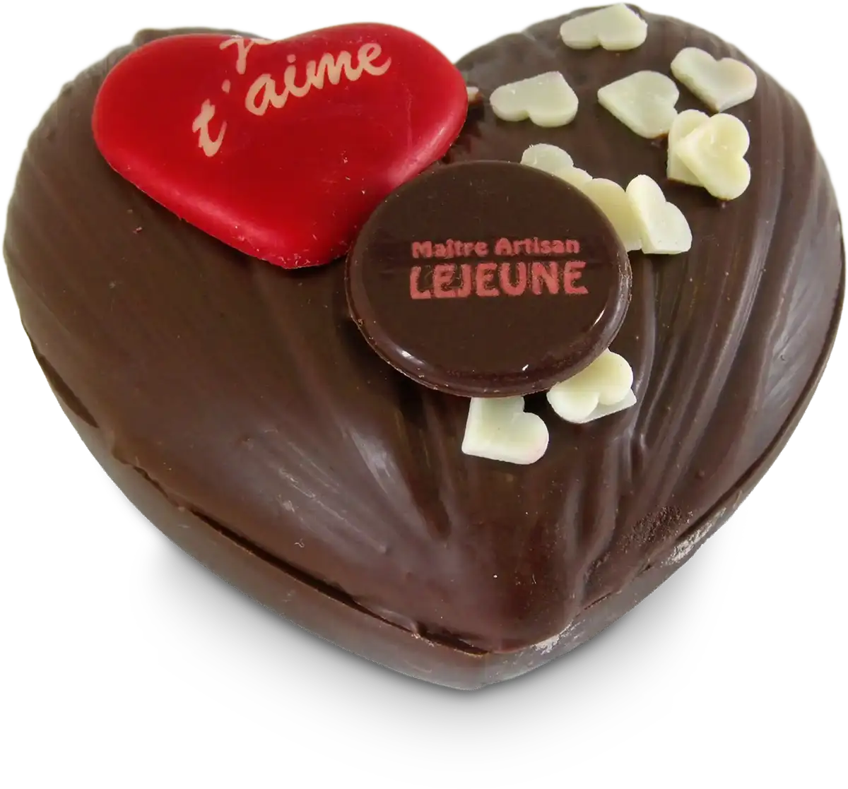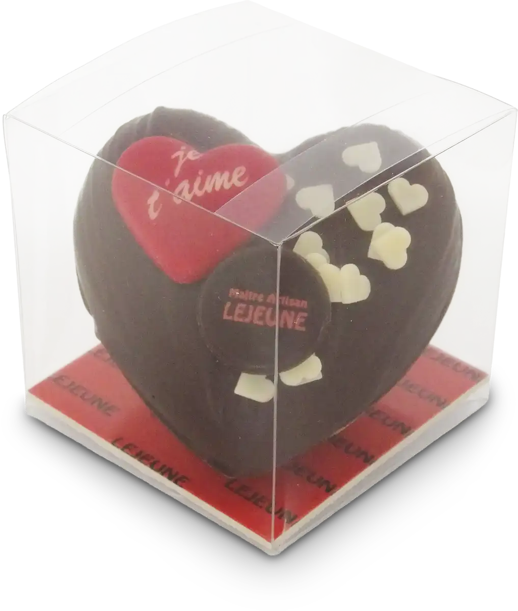 Un cœur intense et fondant en chocolat noir, délicatement fourré d’un praliné amandes et noisettes. Une création gourmande et raffinée, parfaite pour déclarer votre amour avec élégance.