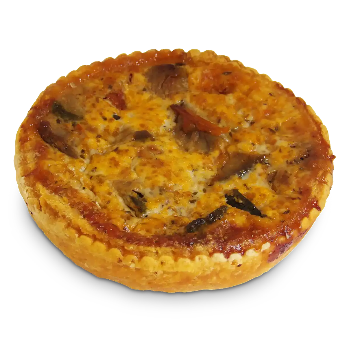 Une quiche individuelle généreuse aux légumes sélectionnés : une garniture colorée, fondante et parfumée, sur une pâte salée croustillante. Une option végétarienne gourmande.